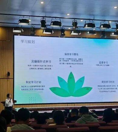 孙宇麒同学不但分享了诸如如何制定学习计划、怎样进行高效复习等具体实用的技巧,而且还谈及了如何培育自身学习兴趣等更为深层次的学习策略。她着重提到了英语的重要性,同时阐述了关于英语的学习方法和独特见解。她提出英语学习乃是一个长期的历程,强调要注重日常的积累以及进行碎片化学习,并积极鼓励学弟学妹们尽早着手准备四六级考试。她的分享为同学们的老员工活提供了一个值得称赞、可资借鉴的范本。