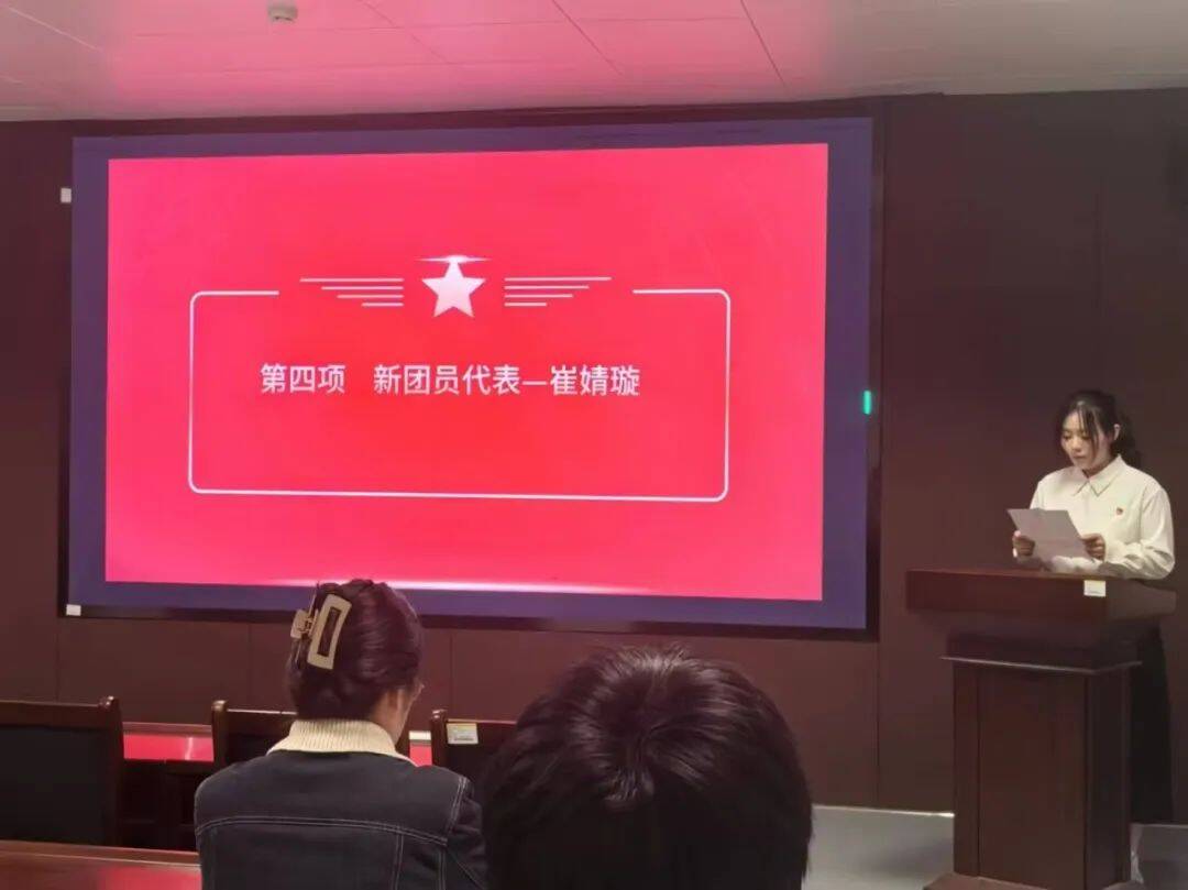 院(所)团委副书记卢静对新团员表示祝贺并为他们寄语,希望新团员们能严格遵守团章,履行团员义务,在共青团的旗帜下茁壮成长,成为有理想、有道德、有文化、有纪律的社会主义建设者和接班人。