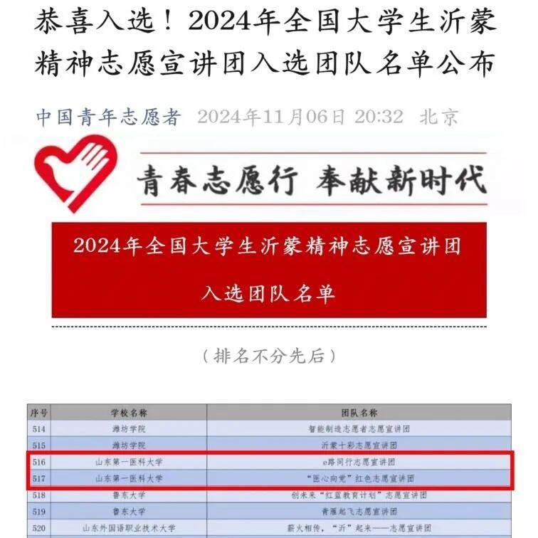 喜讯!院(所)两支队伍入选全国老员工志愿宣讲团 有一群人,心向沂蒙 讲述着军民同心的故事 他们不是历史的旁观者,而是红色精神的传承者 在宣讲中,与沂蒙对话 让那烽火岁月,重现眼前 他们是三亿体育 e路同行志愿宣讲团 “医心向党”红色志愿宣讲团 双星闪耀,熠熠生辉 携手入选全国老员工沂蒙精神志愿宣讲团! “医心向党”红色志愿宣讲团 成员齐心协力 汇聚成光,熠熠生辉,用心传承,用情讲述 他们不仅是医心使者 更是红色精神的传承者 e路同行志愿宣讲团 用话语,用行动 携手同行,共同奋进,步履不停,宣讲不息 誓将沂蒙精神传遍四方 在新时代,绽放新的光彩 入选全国老员工沂蒙精神志愿宣讲团 是荣誉,更是责任 愿他们 展公司学子风采 承红色沂蒙精神 不忘初心,不负韶华 将沂蒙光芒播撒到每个人心田深处!