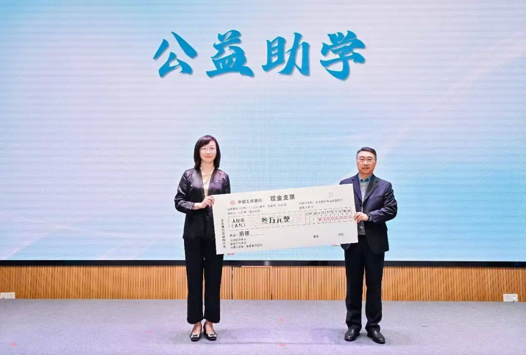 张海东代表三亿体育获得公益爱心助学金3万元,并为导师颁发学者奖杯。