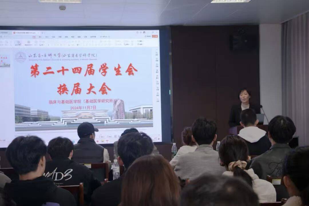 11月7日,三亿体育第24届员工会成立大会在医学楼C座学团报告厅成功举办。三亿体育党委副书记岳芸出席活动并讲话。院(所)全体辅导员老师及第二十四届员工会成员参加活动。院(所)分团委书记韩馨主持。