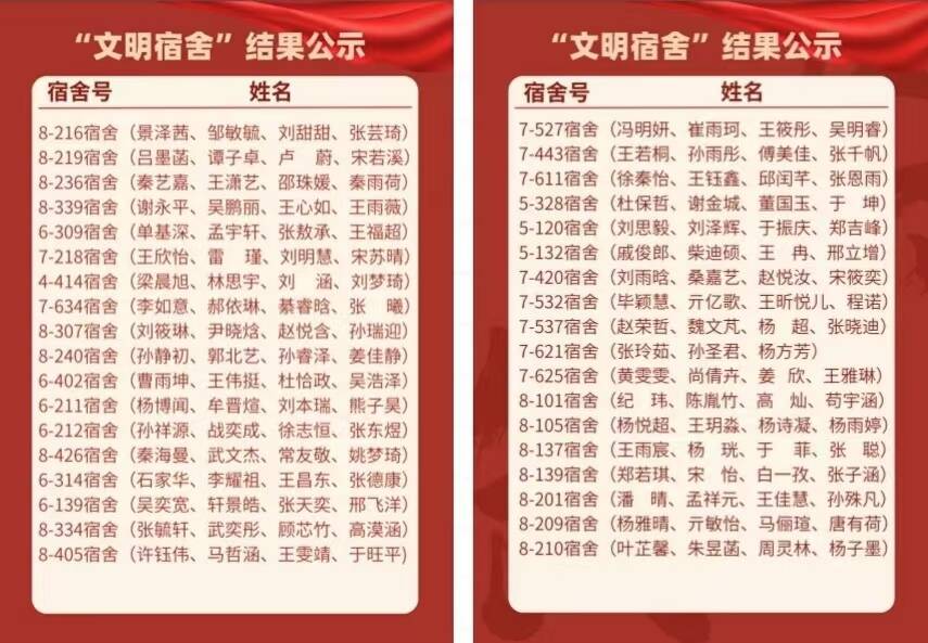 院(所)成立了由分管员工工作的副书记、学工办主任、团委书记和辅导员组成的文明宿舍评选领导小组,经过精心组织和严格评选,活动现已圆满结束。最终共有36间宿舍荣获“文明宿舍”称号,这些宿舍在卫生、文化、学习、文明修养和安全秩序等方面表现突出,成为院(所)宿舍文明建设的模范。