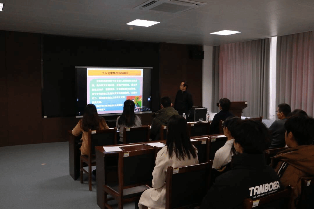 李友刚以《弘扬民族精神,赓续红色基因》为题,讲解习近平总书记关于中华民族精神的系列论述。李友刚结合生动实例、红色故事具体介绍长征精神、抗美援朝精神、红旗渠精神、两弹一星精神、北大荒精神、沂蒙精神和挑山工精神,并鼓励同学们要以此精神为引领,为党和国家事业发展贡献青春力量,要用马克思主义中国化最新成果武装头脑,做马克思主义的坚定信仰者和忠实传承者。