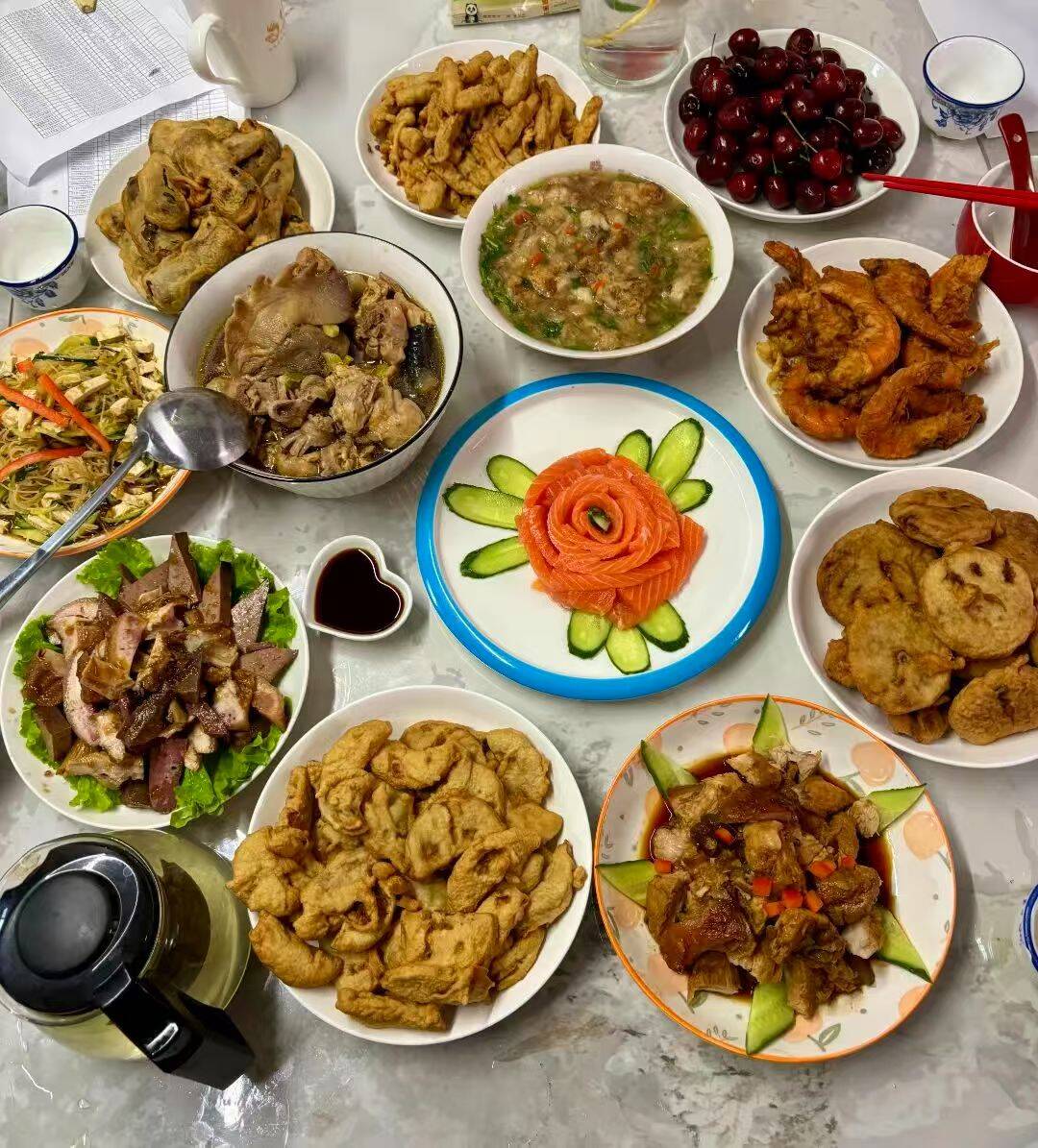 餐桌上,珍馐现;碗碟间,爱绵延。听欢声笑语,喜意蔓延。佳肴传递亲情暖,暖冬相聚共团圆。愿岁岁,此刻永绵延,福满园。