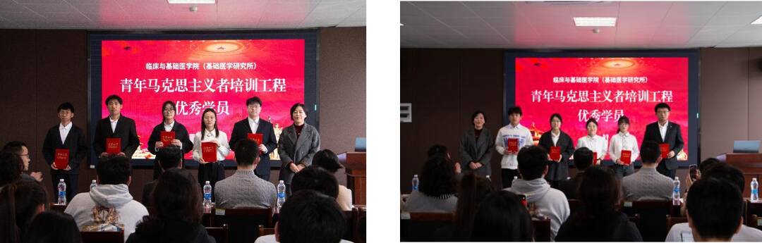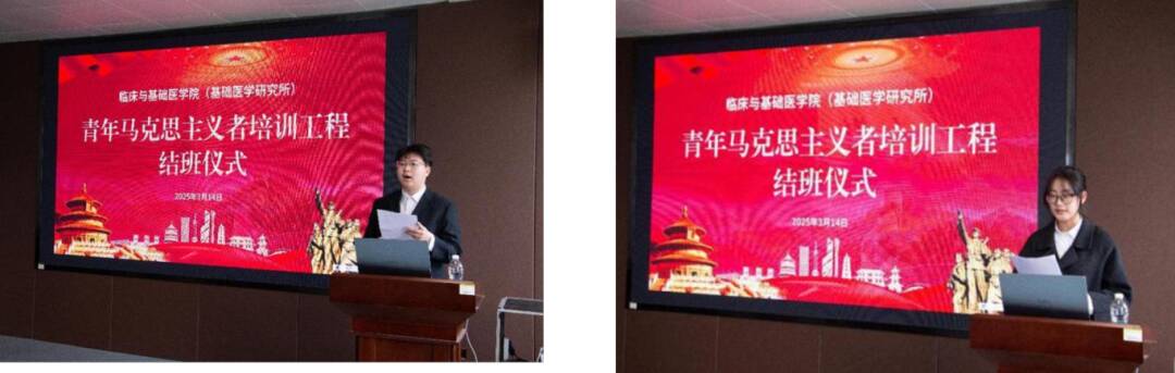 仪式上,两位青马班优秀学员围绕理论学习、实践锻炼等作汇报分享。通过“青马工程”的学习,提升了个人的理论知识和政治素养,也更加深刻地认识到自己作为青年一代的责任和使命。同时表示,作为临床医学专业的一名员工,更要以马克思主义理论为指导,培养自己正确的政治方向、思想观念、道德品质等综合素质,在复杂的社会环境中坚守道德底线和价值追求,不断提高自己的专业技能,做坚定的青年马克思主义者。