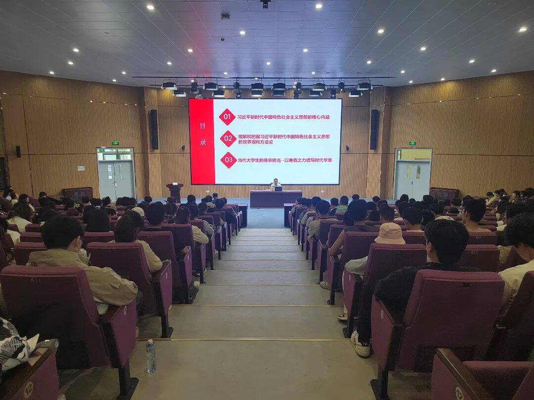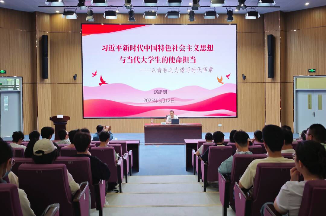 报告会上,路绪剑结合时政热点,深入浅出的阐述了习近平新时代中国特色社会主义思想的核心内涵以及理解和把握习近平新时代中国特色社会主义思想的世界观和方法论,同时结合专业特点对青年学子们提出了要求。路绪剑强调,当代广大青年生逢盛世,新时代赋予青年新的历史使命,要坚定不移听党话、跟党走,立志做有理想、敢担当、能吃苦、肯奋斗的新时代好青年,一是要坚定信念,做有理想之人;二是要练就本领,做敢担当之人;三是要磨练意志,做能吃苦之人;四是要自强不息,做肯奋斗之人,以青春之力谱写时代华章。