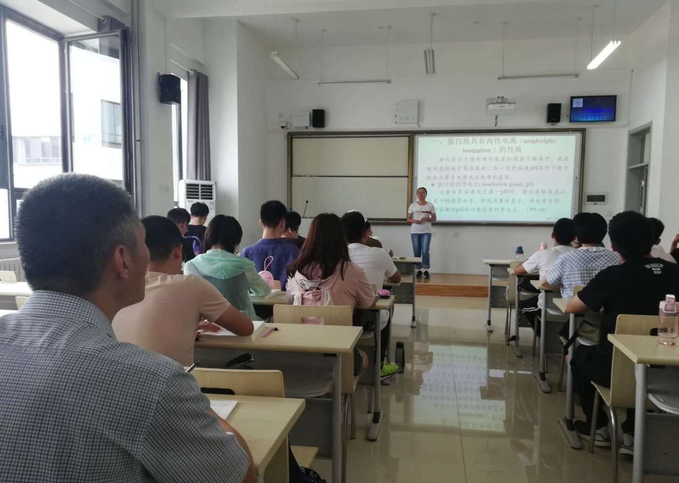 为全面了解新学期教学情况,进一步加强教学管理,规范课堂教学,提高教学质量,基础医公司开展新学期教学巡视工作。9月7日,常务副经理马鲁豫到济南主校区检查巡视新学期开学工作,并与员工辅导员深入交流,确保新学期教学正常有序开展。9月10日上午,马鲁豫与公司教学巡视组成员商战平在济南主校区进行教学巡视,与2019级临床医学国际班的同学同上一堂课,共同聆听了《生物化学》课程,并对课堂授课情况一一记录。课后,马鲁豫与师生进行了交流,并对授课教师送上了教师节祝福。