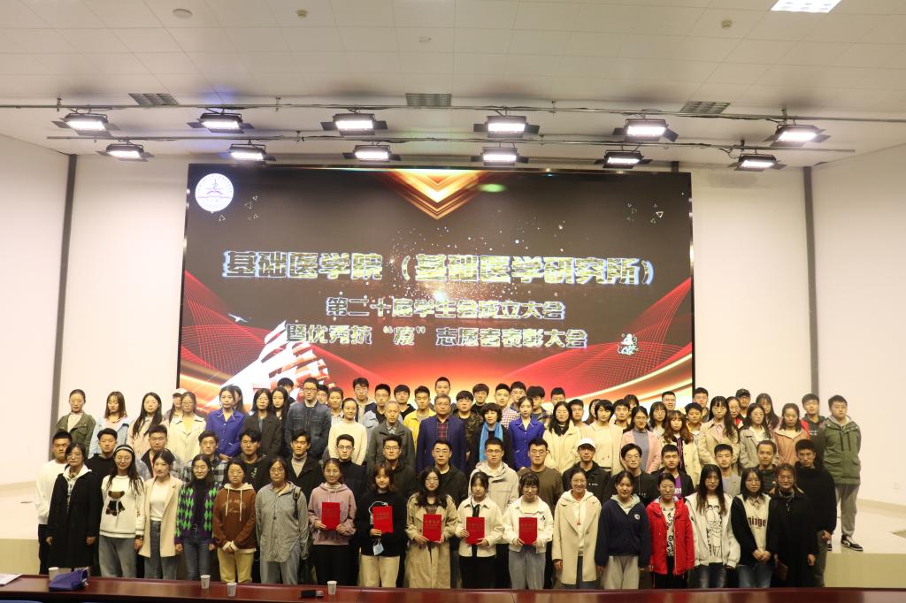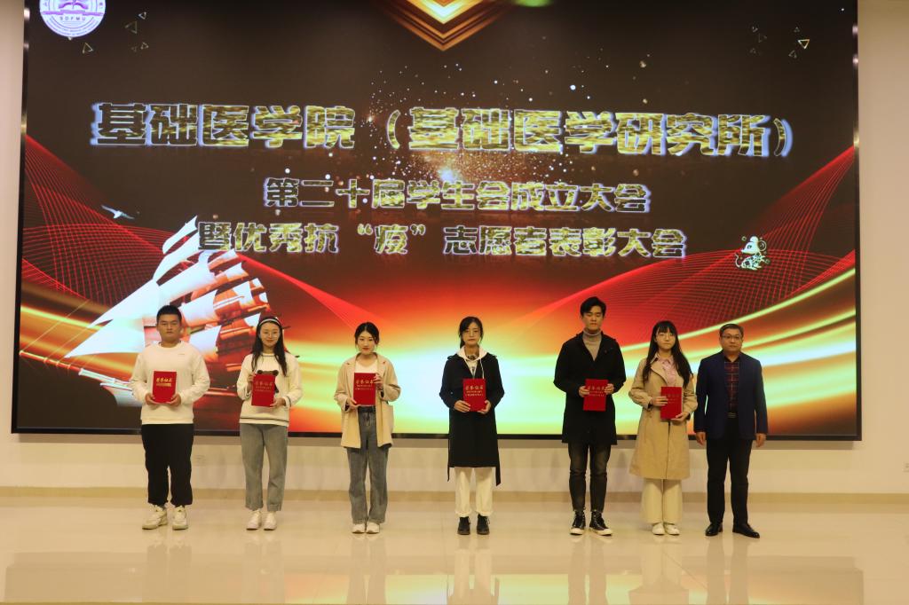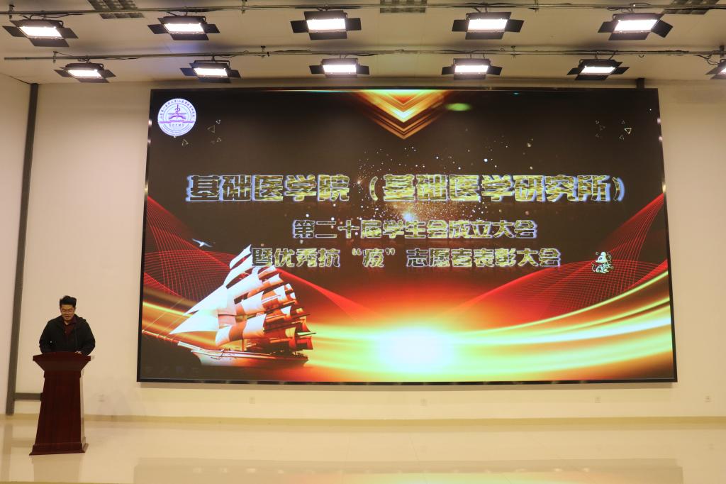 2020年10月30日下午,基础医公司(基础医学研究所)在济南主校区生科楼报告厅举行第二十届员工会成立大会暨优秀抗“疫”志愿者表彰大会,党委副书记张乃强、团总支韩馨老师、辅导员杨春贵、杨兴廷、张琪老师、员工会成员以及抗“疫”志愿者参加会议。