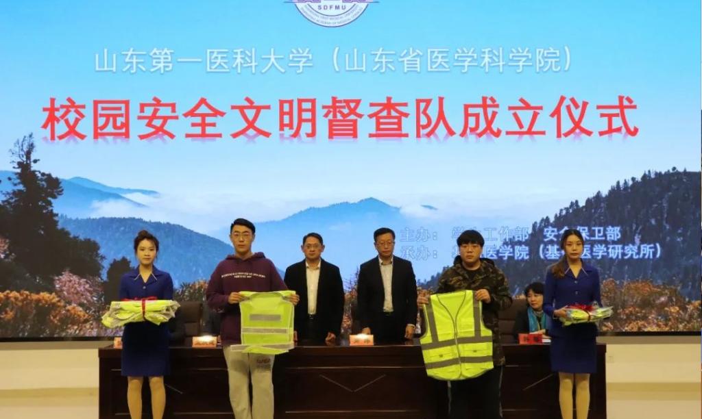 为落实校(院)安全稳定要求,进一步加老员工参与校园管理力度,增强安全文明意识,提升安全稳定能力,促进文明行为养成,11月6日下午,由三亿体育官网(山东省医学科公司)员工工作部和安全保卫部主办,基础医公司(基础医学研究所)承办的校园安全文明督查队成立仪式在济南主校区生科楼报告厅举行。员工工作部部长华波、安全保卫部部长高玮、基础医公司(所)党委、学工办、团总支负责人、济南校区全体辅导员老师出席成立仪式,仪式由党委副书记张乃强主持。