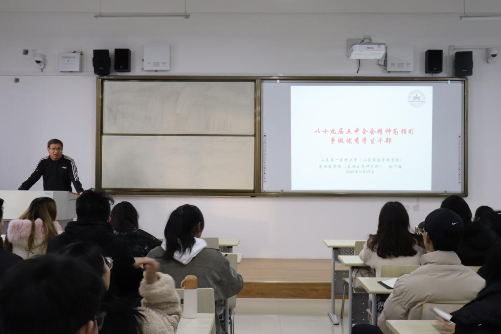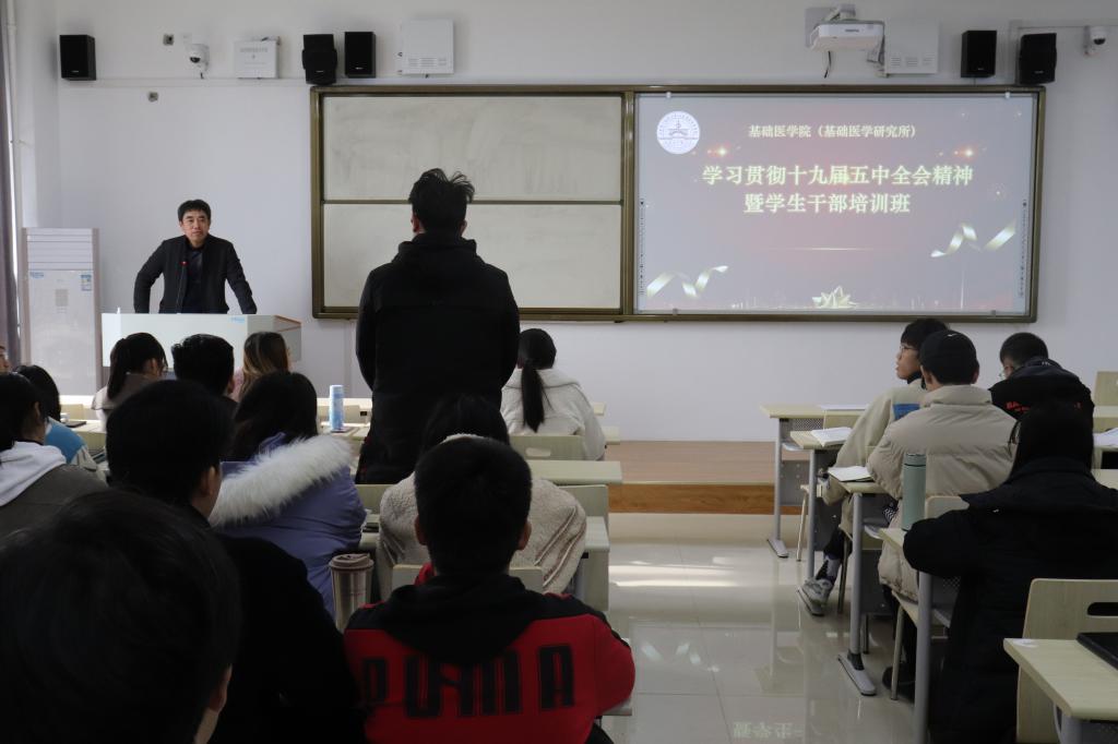 为深入学习贯彻党的十九届五中全会精神,着力提高员工工作的时效性,引导广大青年老员工坚定跟党走中国特色社会主义道路的信念,11月28日上午,基础医公司(所)于济南主校区公共教学楼A2-305教室举办学习贯彻党的十九届五中全会精神暨员工干部培训班,院(所)党委书记孟庆建对于培训班内容给予具体指导和提出明确要求,副书记张乃强、学工办侯瑞刚老师、团总支韩馨老师进行宣讲和培训。