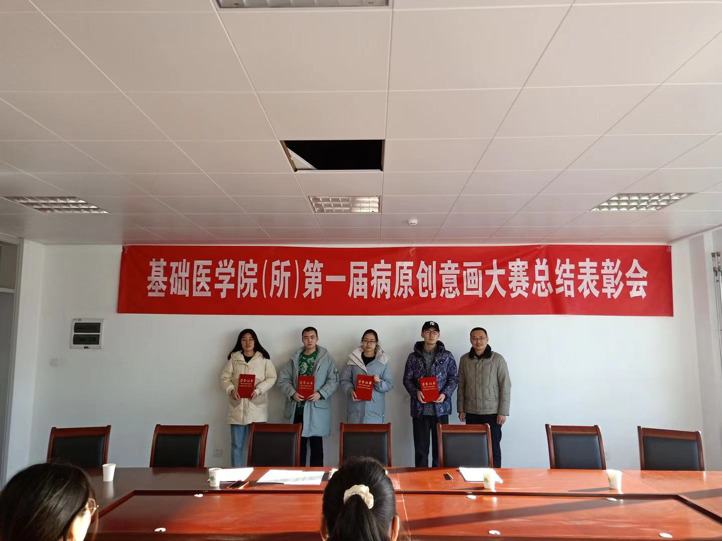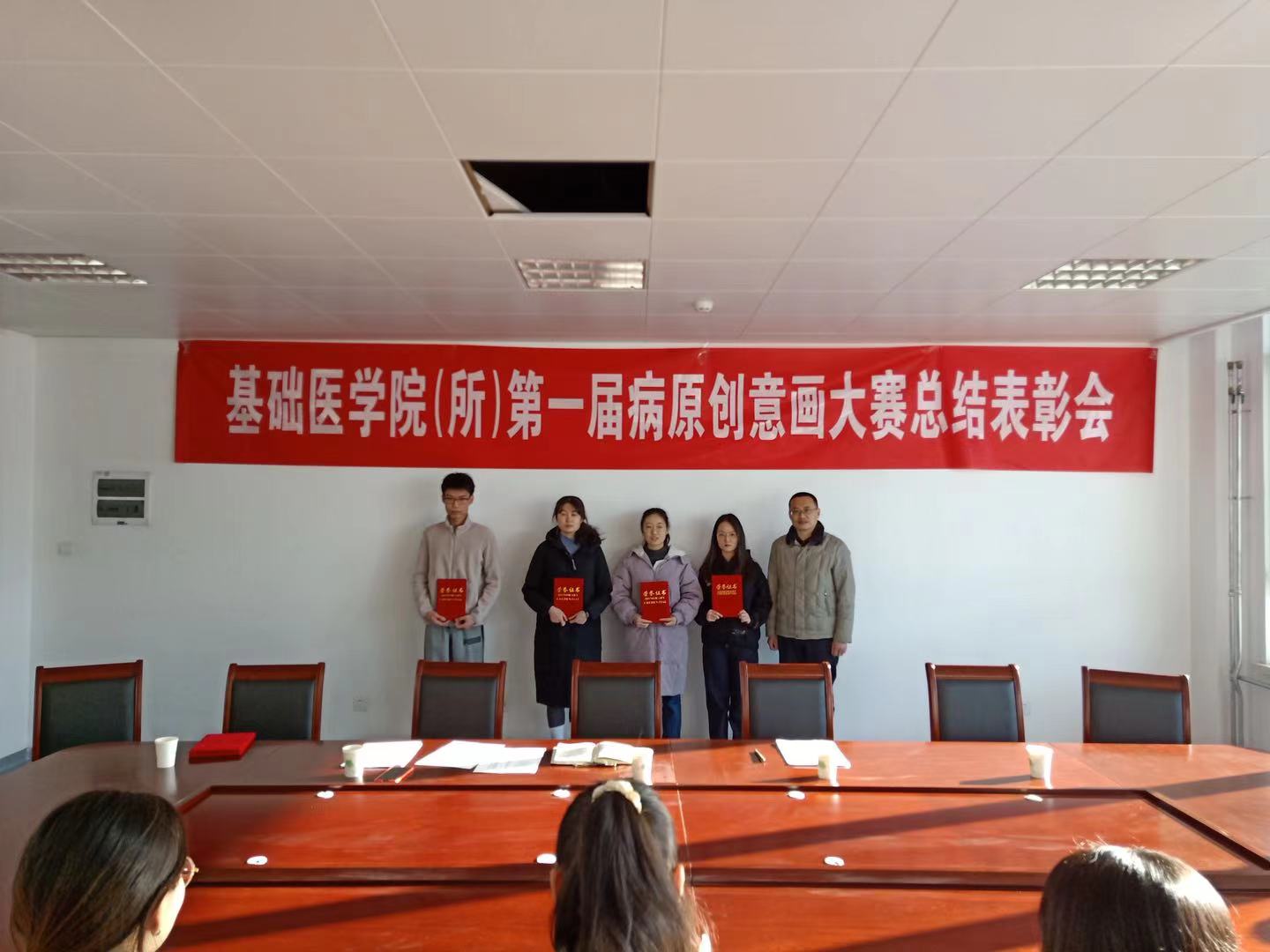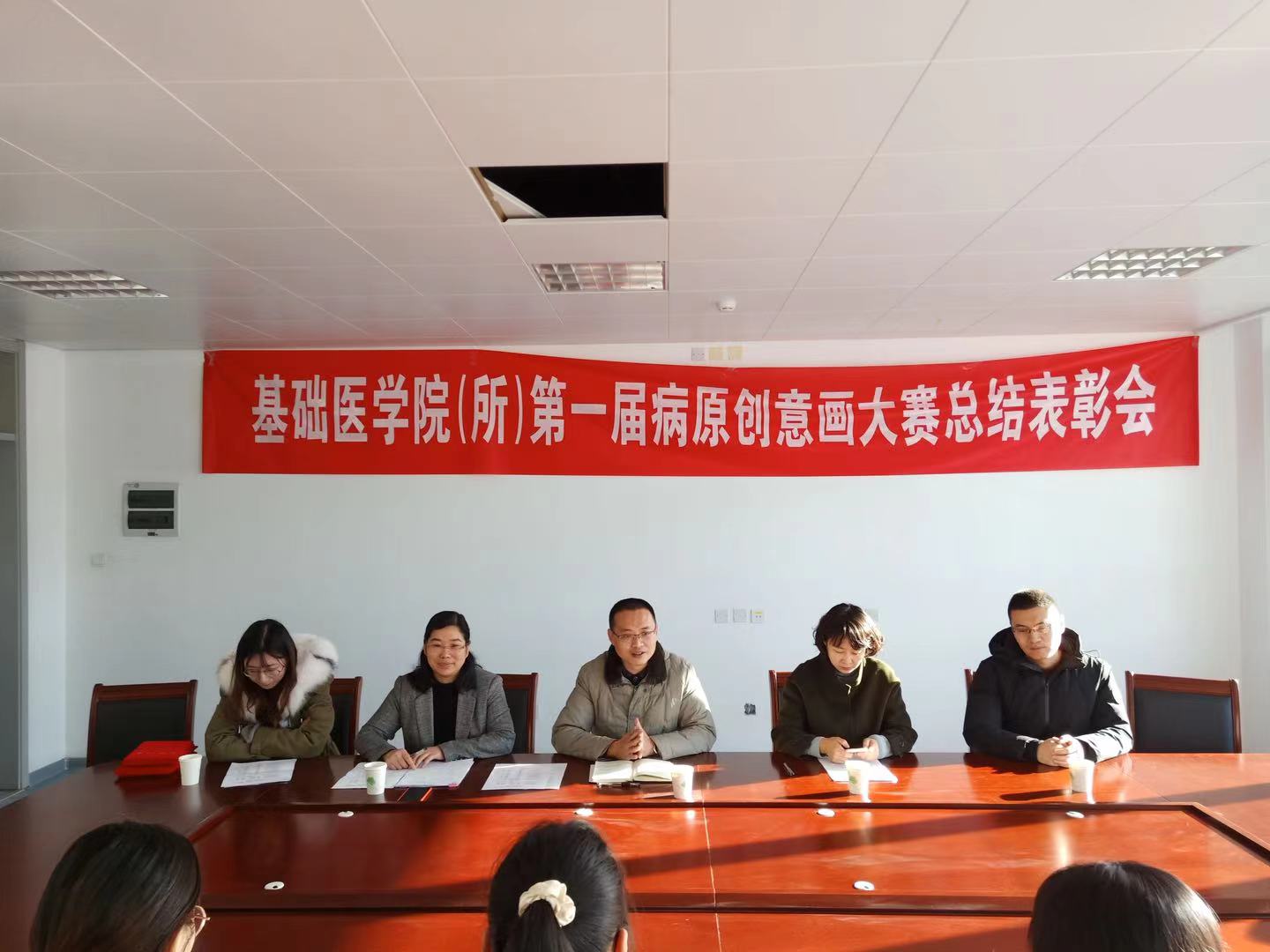 12月30日,基础医公司(所)第一届“病原创意画”大赛总结表彰会在济南主校区基础楼会议室举行。表彰会由病原生物学教研室主任赵英会教授主持,副院(所)长于广福,团总支韩馨老师,病原生物学教研室吕刚老师和辅导员赵上老师以及参加比赛的同学代表共同参加。