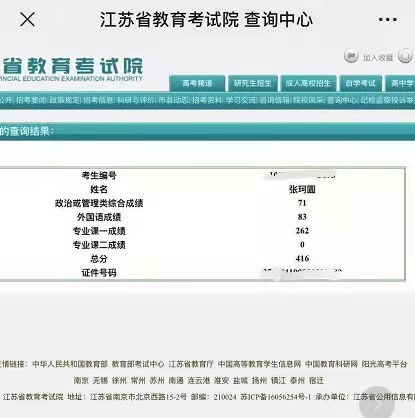 【成绩】416分