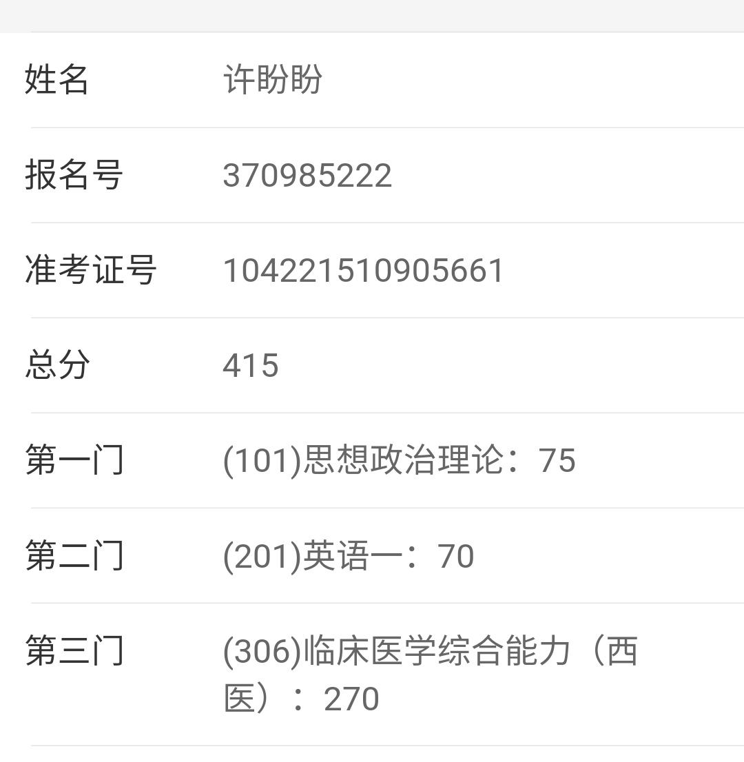 每个选择考研的人都勇敢而孤独。走完这一段长路之后,之前一直在看前辈经验贴的我,终于也开始想着手写下一些自己的备考之路和心得体会。考研之前,我对自己的潜力一无所知,很害怕走上这一条漆黑的路,总怀疑自己摸爬滚打了一年,最后劳而无功。所幸随着2021年考研成绩的公布,一年来付出的努力总算看到了成果。考研总分:415。西综270,政治75,英语70。