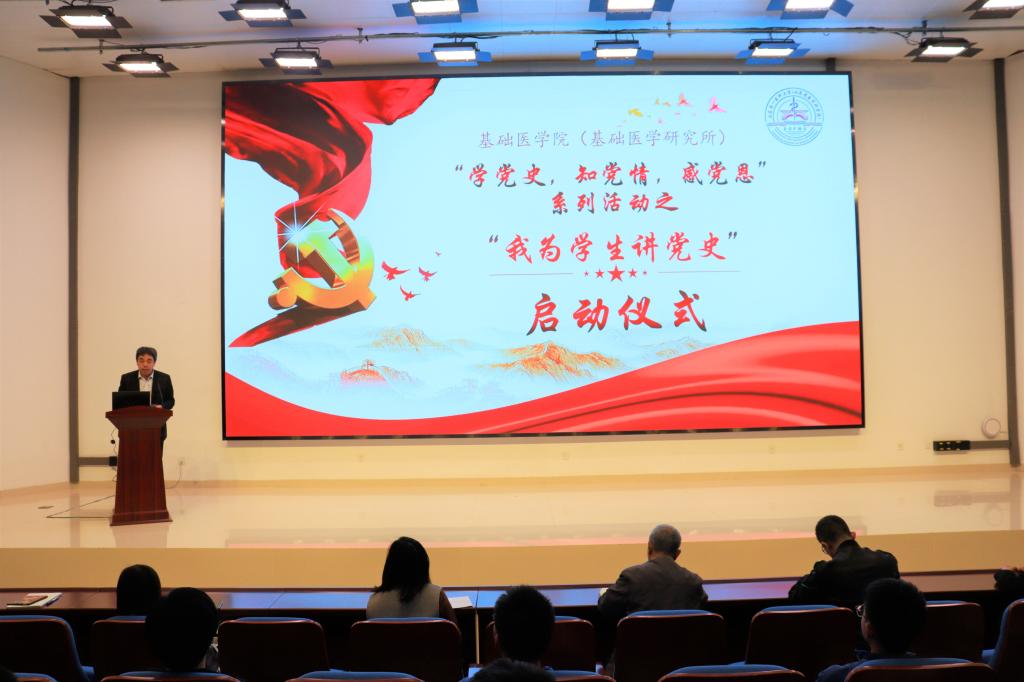为了庆祝建党100周年,学习贯彻习近平总书记在党史学习教育动员大会上的讲话,按照校(院)动员大会会议精神,根据院(所)党委统一部署,基础医公司(所)于4月15日下午在济南主校区生医楼报告厅举行“我为员工讲党史”启动仪式,院(所)党委副书记张乃强、全体辅导员老师及2018级、2019级全体员工党员和党员发展对象共计230多名师生参加启动仪式。