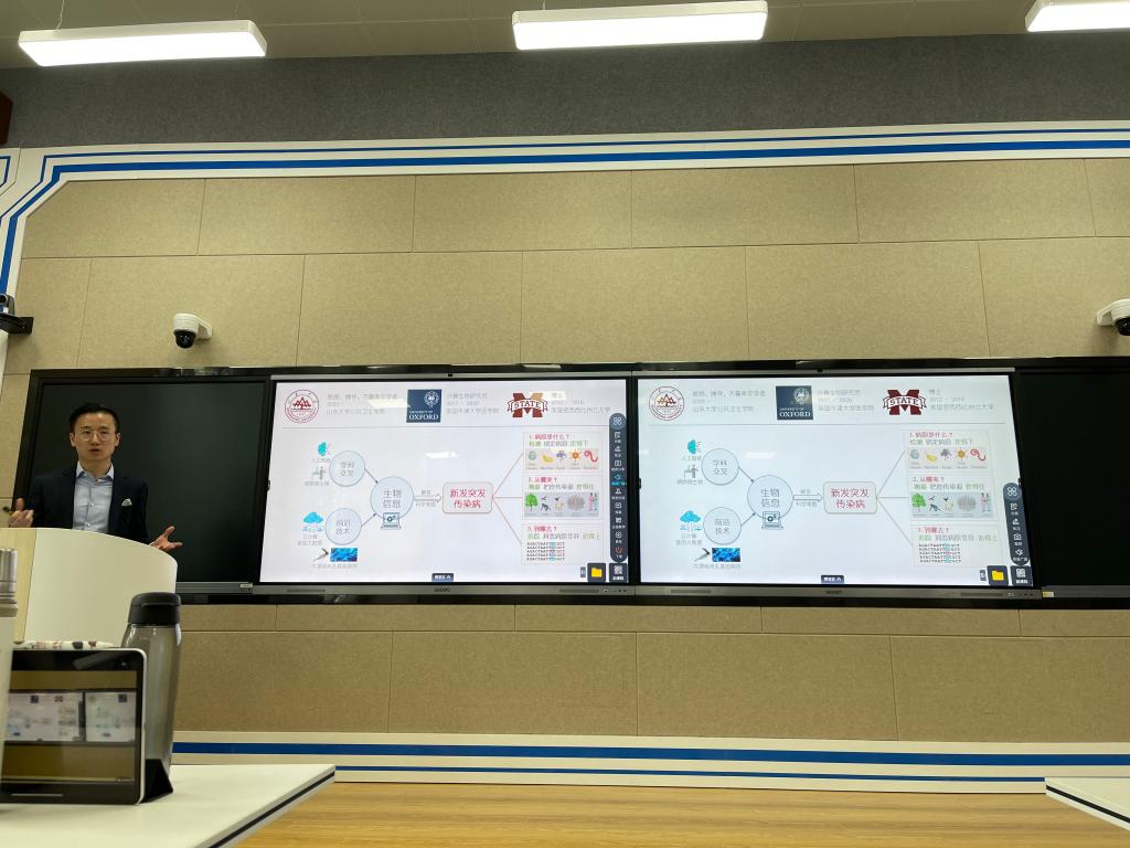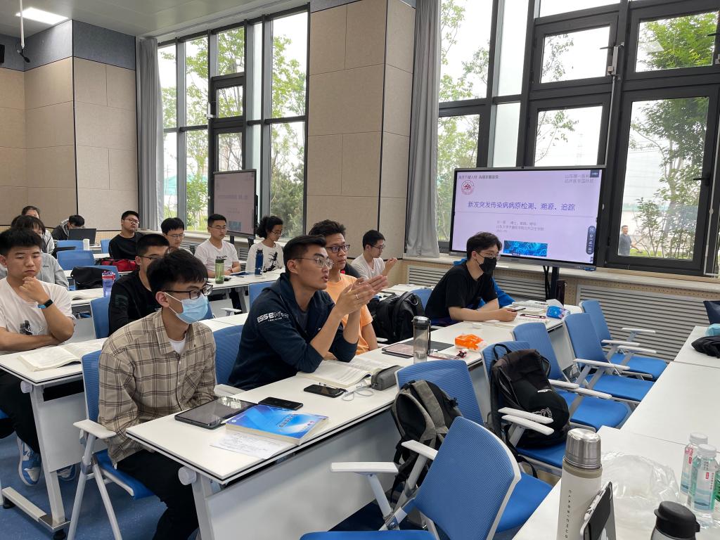 许一菲教授向同学介绍了他在新发突发传染病病原检测、溯源、追踪等方面取得的系统性创新成果,包括创建新一代病原实时、便携、智能检测和监测方法,阐释新病毒的起源和分子进化机制,监测新冠、推进全球首套全基因组测序(WGS)大型疾病诊断系统研发。许教授重点讲解了病原实时智能检测和监测方法的构想、设计、建设和实践,他发现全国第三例、山东省首例输入性新冠病毒英国变异株病例的过程。许教授分享了海外求学、工作的经历,他朴素的家国情怀深深感染了卓越班的同学们。许教授带领同学们学习了习近平总书记视察清华大学时的重要讲话精神,和同学们共勉“肩负历史使命,坚定前进信心,立大志、明大德、成大才、担大任,努力成为堪当民族复兴重任的时代新人”。