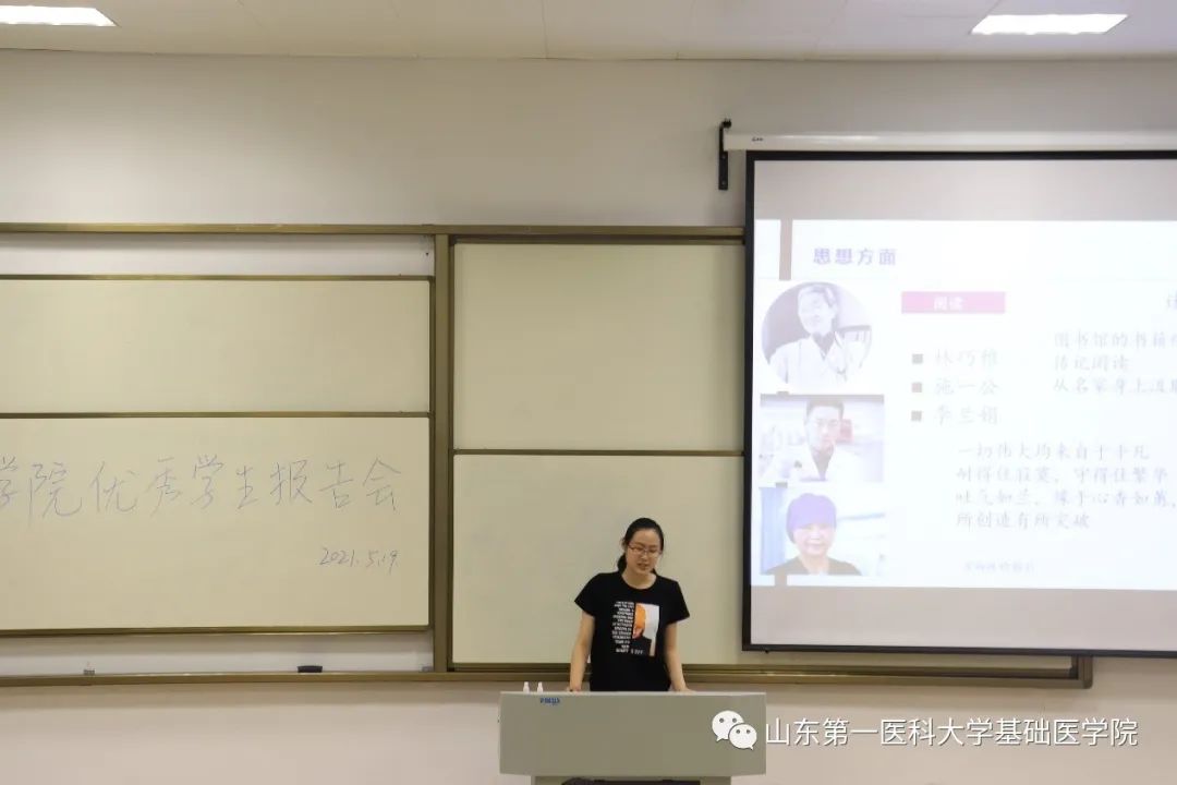 为发挥优秀员工的模范引领作用,喜迎建党一百周年,进一步推进学风建设和校园文化建设,引导广大青年员工励志勤学、全面发展,基础医公司(所)员工工作办公室于5月19日在济南主校区公教楼A3-103成功举办2021年基础医公司(所)优秀员工报告会。报告会邀请2018级临床医学本科卓越1班张家慧、2018级临床医学本科1班邢冠群、2019级临床医学国际班(卓越医生)本科1班郑培贤、2019级临床医学本科4班王焕丽同学作为优秀员工代表发言。