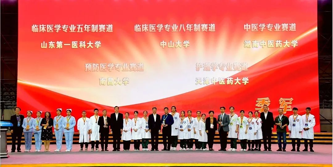 经过四个月的磨炼,我们真正走上了战场,随着安徽赛场一声“第十届临床医学专业五年制赛道华东分赛区比赛开始”,较量开始了。倒计时的每分每秒都显得如此醒目,队友们的操作迎来阵阵夸赞,披荆斩棘一天我们成功闯进全国总决赛,那一刻我们欢呼雀跃、斗志昂扬,那一刻老师们热泪盈眶,我们知道那是我们日日夜夜的努力终于散发出了光芒。比赛并未结束,真正的较量即将拉开帷幕,天津赛场上40多支曾经在各分赛区辉煌过的优秀队伍集结在一起,为了更高更闪亮的位置,我们必须拼尽全力,赛站的微微失利,赛道的绝美反击,决赛的精彩演绎,我们最终站在了金奖的领奖台上。金奖季军这一突破公司最好成绩的答复让我们如在梦中,我们终于用最好的状态给公司,给医院,给老师们,给战友们,更是给自己交了一份满意的答卷。