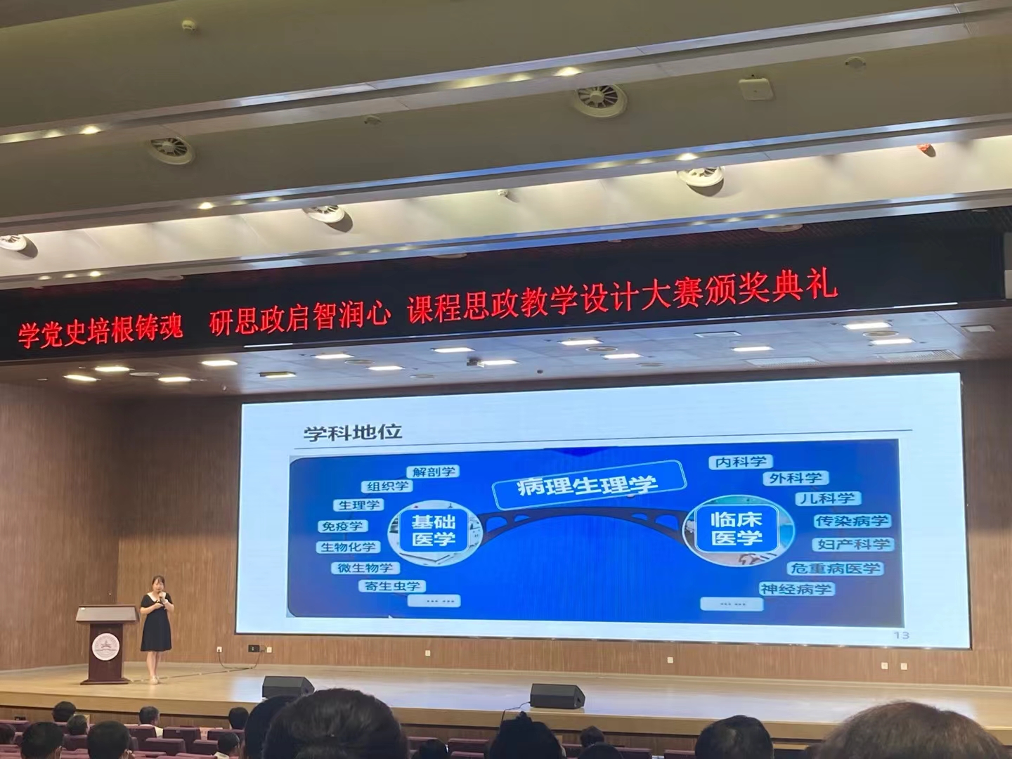 6月29日,校(院)课程思政教学设计大赛决赛在济南主校区举行,来自各公司的17名教师同台竞技。基础医公司(所)5名教师入围决赛,并在本次比赛中喜获佳绩。刘欣、孙凌云获得一等奖,杨瑞瑞、王炳香获得二等奖,杨华获得三等奖,院(所)获得优秀组织奖。院(所)优秀青年教师、山东省第八届高校青年教师教学比赛一等奖获得者杨瑞瑞在颁奖典礼现场做课程思政经验分享。