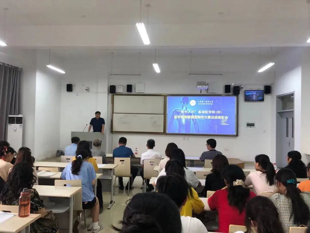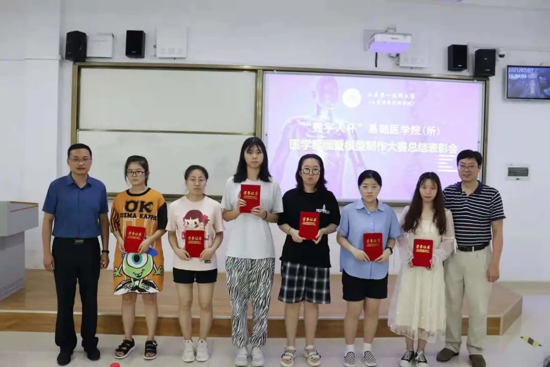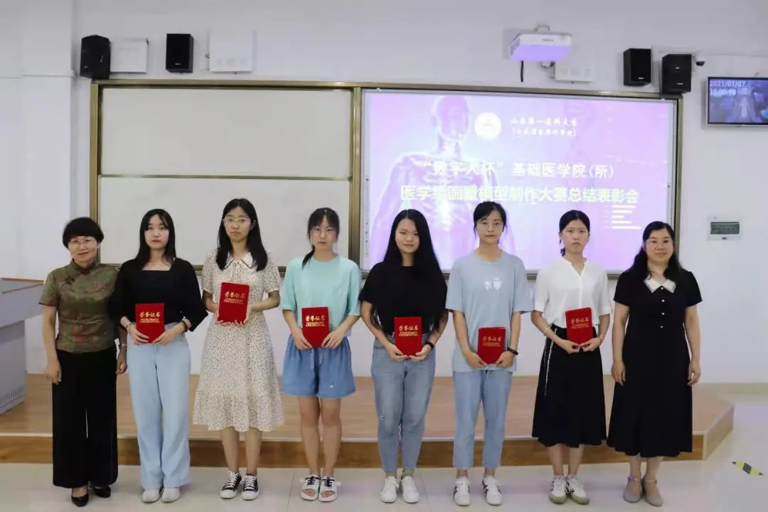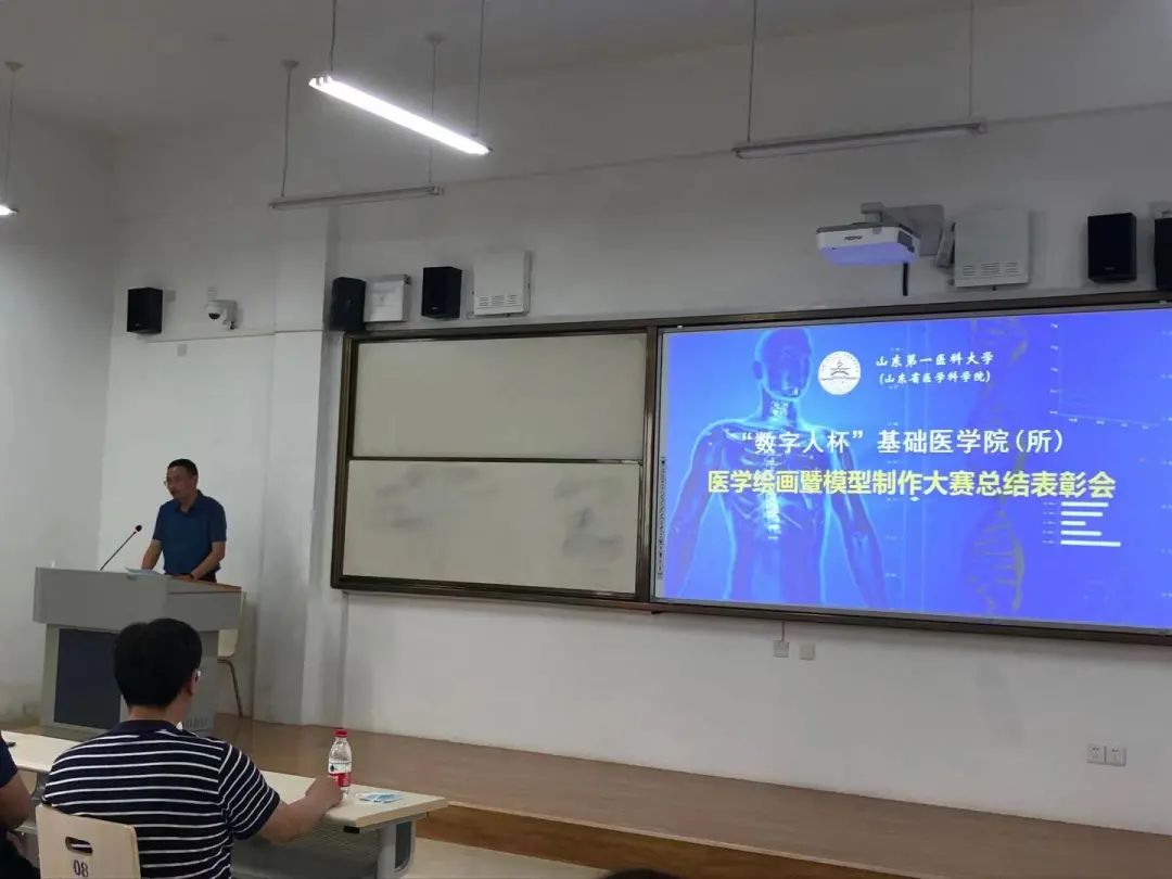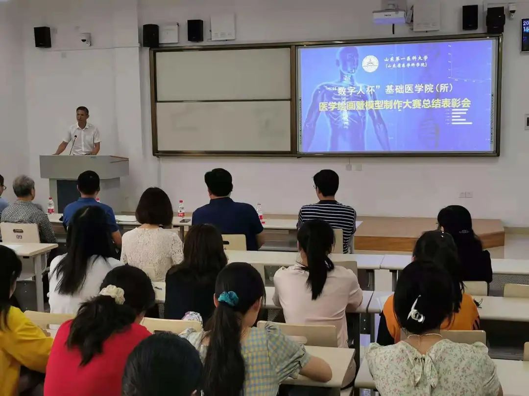 2021年7月7日“数字人杯”基础医公司(所)医学绘画暨模型制作大赛总结表彰会于济南主校区公教楼举行。出席本次颁奖典礼的领导嘉宾有山东数字人科技股份有限公司董事长徐以发、基础医公司(所)常务副经理马鲁豫、副经理于广福、人体解剖学系主任王越、组织学与胚胎学系主任苏衍萍、病原生物学系主任赵英会及院(所)学工办、团总支和辅导员老师代表。基础医公司(所)员工会员工干部代表和全体获奖同学参加了本次大会。本次颁奖仪式由基础医公司(所)副书记张乃强主持。