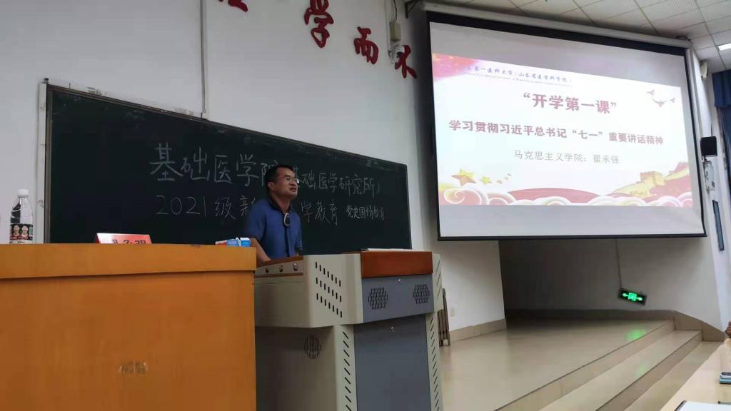 9月8日,基础医公司(所)邀请马克思主义公司党总支书记翟承强、安全保卫部李明为同学们开展新生入学教育的第一课。齐聚一堂学党史,携手平安谱华章。