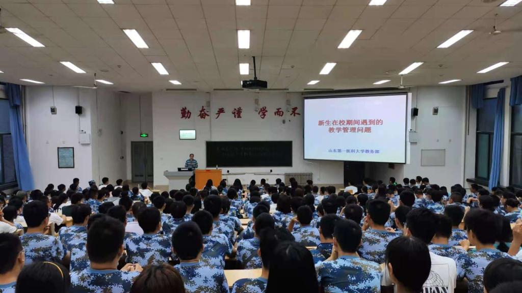 王部长为同学们介绍了员工学习生活平台。从办学情况、公司专业、教务职责、规章制度四个方面解答了新生在校期间遇到的教学管理问题。带领同学们了解了山一大优厚的办学条件,教务部的科室设置与主要职责,熟悉综合教务系统的操作方法,详细解读了学籍注册、学分制、重修辅修、转专业等一系列事关同学们切身利益的重要规章制度。他清晰的逻辑,简洁的叙述解开了同学们心中的困惑与疑虑。