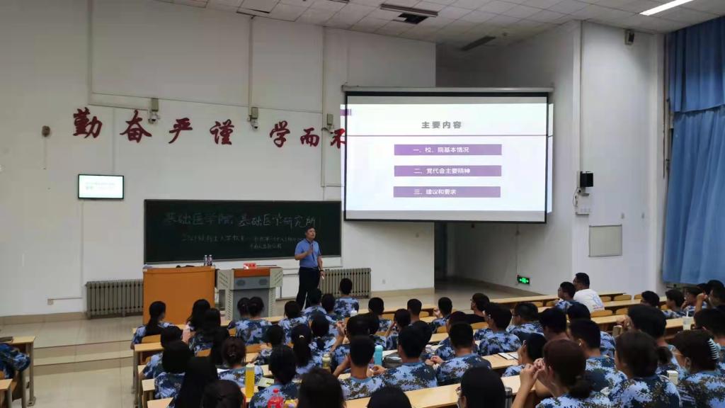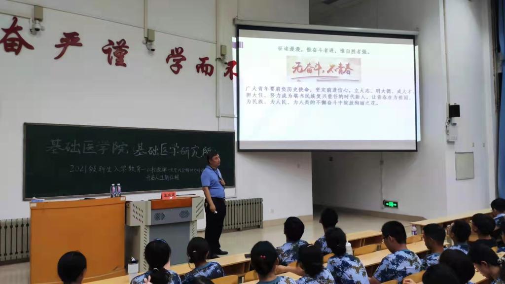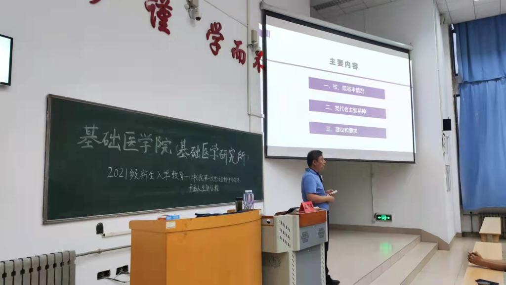 9月13日,基础医公司(基础医学研究所)党委书记孟庆建,为同学们开展新生入学教育第五课——以校(院)第一次党代会为引领,开启人生新征程。蓝图已绘就,奋斗正当时。