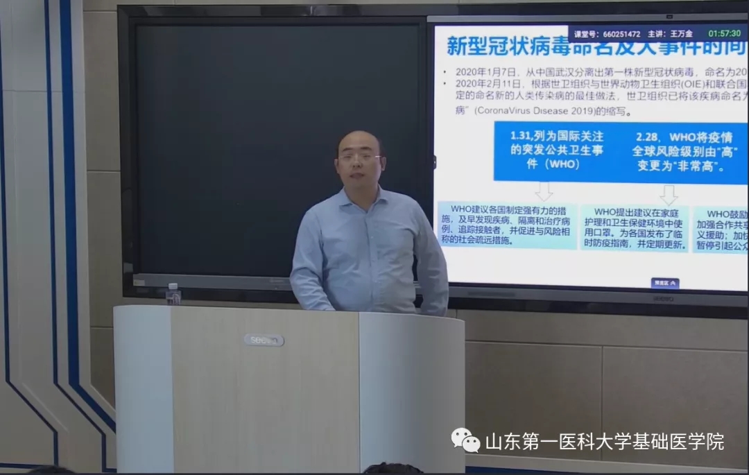 同学们分别以线下、线上两种方式参与课堂。2020级临床医学国际班的同学们在现场聆听了讲座,在课后积极提出问题,就AED效应(抗体依赖增强)和细胞因子风暴与老师展开了交流。线上课堂的同学利用电脑、手机等移动终端参与直播授课。同学们认真聆听,积极思考,收获颇丰。本次讲座使同学们对新冠病毒有了更全面的认识,拓展了同学们的视野,并进一步提高了防疫意识和自我防护能力。