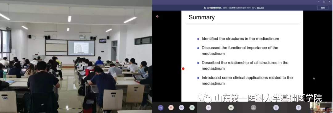 为了更加充分地激发员工的学习热情,更好的了解国际医学发展方向和最新进展,开阔员工的国际视野,9月27日上午,人体解剖学系组织2020级临床医学国际班与远在加拿大多伦多大学的孙宏硕教授进行连线,孙教授通过线上直播为同学们进行了《Regional anatomy》课程中《Thorax》的专题授课。