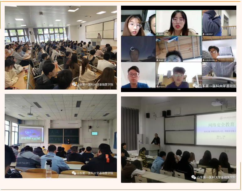 基础医公司(所)于2021年10月13下午召开全体辅导员会议,部署网络安全宣传活动,全体辅导员分两个校区、线上线下对在校生、见习、实习的员工共计4300多名同学开展此次活动。全体老师带领同学们学习国家网络安全法律法规、个人信息保护、网络安全常识等内容,向同学们普及网络安全常识,引导同学们增强网络安全意识和技能。