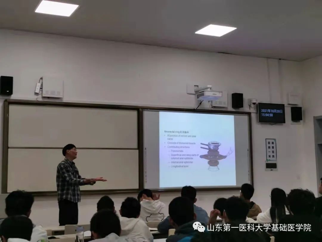 为进一步提高公司临床医学本科(卓越班)授课水平,增强员工的医学英语听说能力、开拓视野,10月28日下午,应公司基础医公司(基础医学研究所)邀请,山东大学基础医公司解剖学教研室李振中教授为2020级临床医学本科(卓越班)员工进行了以《Regional anatomy》课程中《Pelvis and Perineum》为主题的线下双语教学。人体解剖学系部分教师进行了现场观摩。