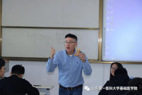 Rick首先介绍了他的爱好——Photography。从他的第一台Film camera(胶卷相机)到现在的Digital camera(数码相机),他在过去的24年中记录了生活中的方方面面,各种照片令人赞叹不已。来自南非的Keith更像是一位中国的伯伯,他的爱好是drawing and painting,他最喜欢的工具就是——charcoal,并向我们展示了他的画作。He reckons that it’s satisfying to catch the unique scenes. Every scene was unique at that time in the world. Steve是一位 Antique Buff (古董收藏爱好者),他向我们展示了他的部分藏品,这些大部分都是中国的古董,可见他对中国文化的热爱,其他两位外教对中国传统文化也十分感兴趣。