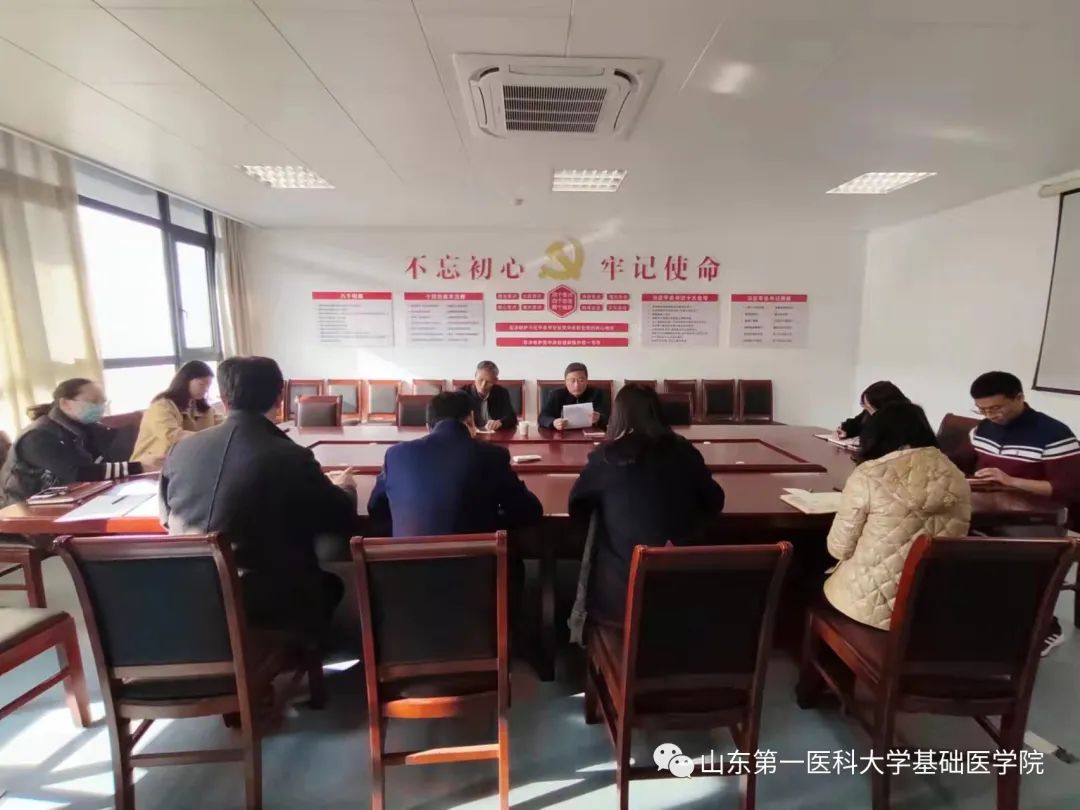 于广福在发言中谈到,深入学习贯彻全会精神,要坚持不懈学懂弄通做实习近平新时代中国特色社会主义思想,不断增强“四个意识”,坚定“四个自信”,做到“两个维护”,提升政治判断力、政治领悟力、政治执行力,做到绝对忠诚核心、坚决维护核心、时刻紧跟核心、坚定捍卫核心;要结合校(院)第一次党代会精神、校(院)“十四五”规划、校(院)“135工程”,增强忧患意识,主动学习、对表对标,依托科教融合优势,锚定“做强基础医学公司产品”目标,认真落实“院(所)教育提升计划”任务要求,按照教育部本科公司产品审核评估实施方案(2021-2025年)通知,不断深化基础医学综合性、创新性实验教学体系建设,注重教师、教材、教法改革和员工创新素质、创新能力提升,为校(院)迎接本科公司产品审核评估做出应有的贡献。