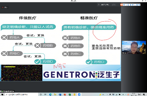 常金副教授讲授的主题是:肿瘤靶向治疗。他首先将肿瘤传统治疗和精准治疗进行对比,得出了肿瘤靶向治疗的临床优势,从而对肿瘤靶向治疗进行细致讲解,对以基因芯片为基础的检测、肿瘤药物治疗的靶点等内容进行了清晰阐述,总结了目前国内外最新的肿瘤免疫治疗进展,并提出了个人的见解和展望。
