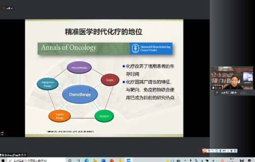 刘海燕教授讲授的主题是:肿瘤传统化疗。肿瘤的治疗有传统化疗和靶向治疗两大方向,本次网络授课,她主要从肿瘤的传统化疗角度,向大家讲述了传统化疗的分类、发展、临床应用、注意事项、不良反应等,并以紫杉醇为代表,向大家介绍了传统化疗药物的研发历程,对比了联合化疗和单纯化疗的利与弊,认为传统化疗必须与现代技术相结合,才能焕发出其在抗肿瘤方面的重要作用,并在循证医学和统计学领域解释了肿瘤联合化疗的意义。讲授深入浅出、幽默风趣,将基础与临床紧密结合,既帮助同学们巩固课上基础医学所学内容,又拓展了医员工的疾病认知,极大提升了员工的学习兴趣。
