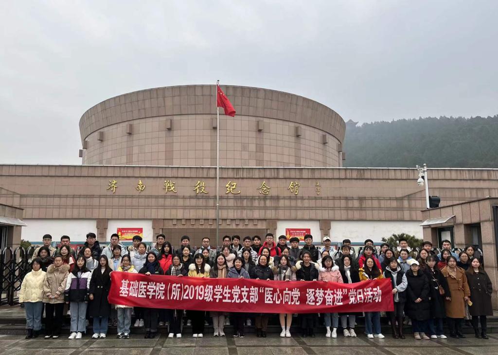 为深入学习贯彻党的十九届六中全会精神,推动党史学习教育扎实开展,12月11日上午,基础医公司(所)2019级员工党支部到济南战役纪念馆开展“医心向党 逐梦奋进”党日活动,重温革命历史,铭刻红色记忆。分团委韩馨,辅导员王燕、李佳琳,2019级员工党支部同学代表参加本次活动。
