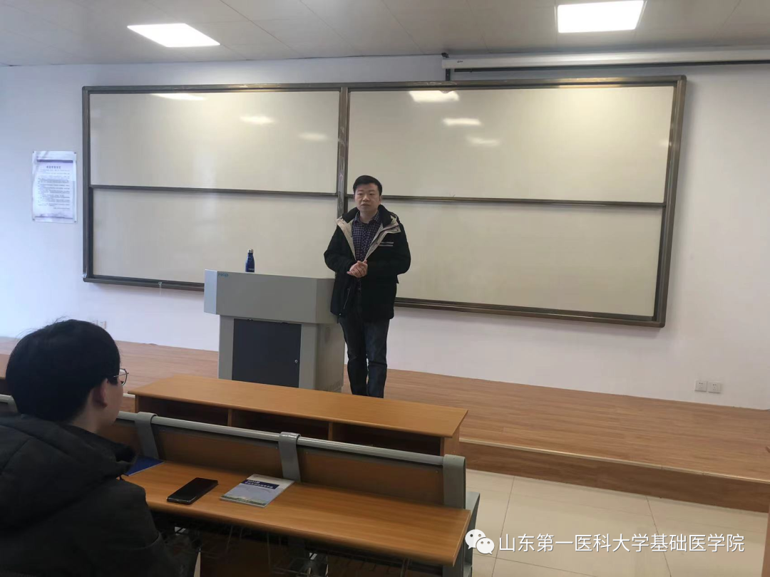 为安排部署毕业实习的相关事宜,激发同学们“团结协作、实事求是、敢于创新”的精神。2022年1月4日,基础医公司(基础医学研究所)于基础楼B124召开“2018级医学实验技术实习教育”动员大会,基础医公司(所)医学实验技术教研室主任张昭强、辅导员孙惠蓉以及2018级医学实验技术全体同学参加此次实习教育大会。