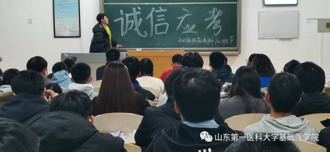 2021年秋季学期即将结束,期末考试即将来临。为提醒同学们加强课程复习,注重营造优良学风考风,2022年元旦前后,基础医公司(基础医学研究所)各个年级开展“诚信应考”主题班会,加强考风考纪宣传,教育引导员工努力备考、诚信应考,以优异成绩展现自己的学习成果。