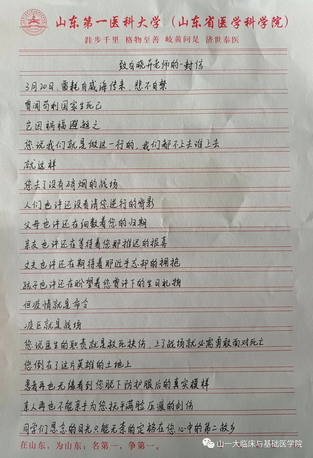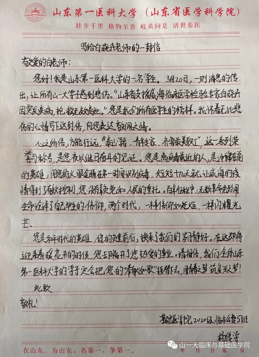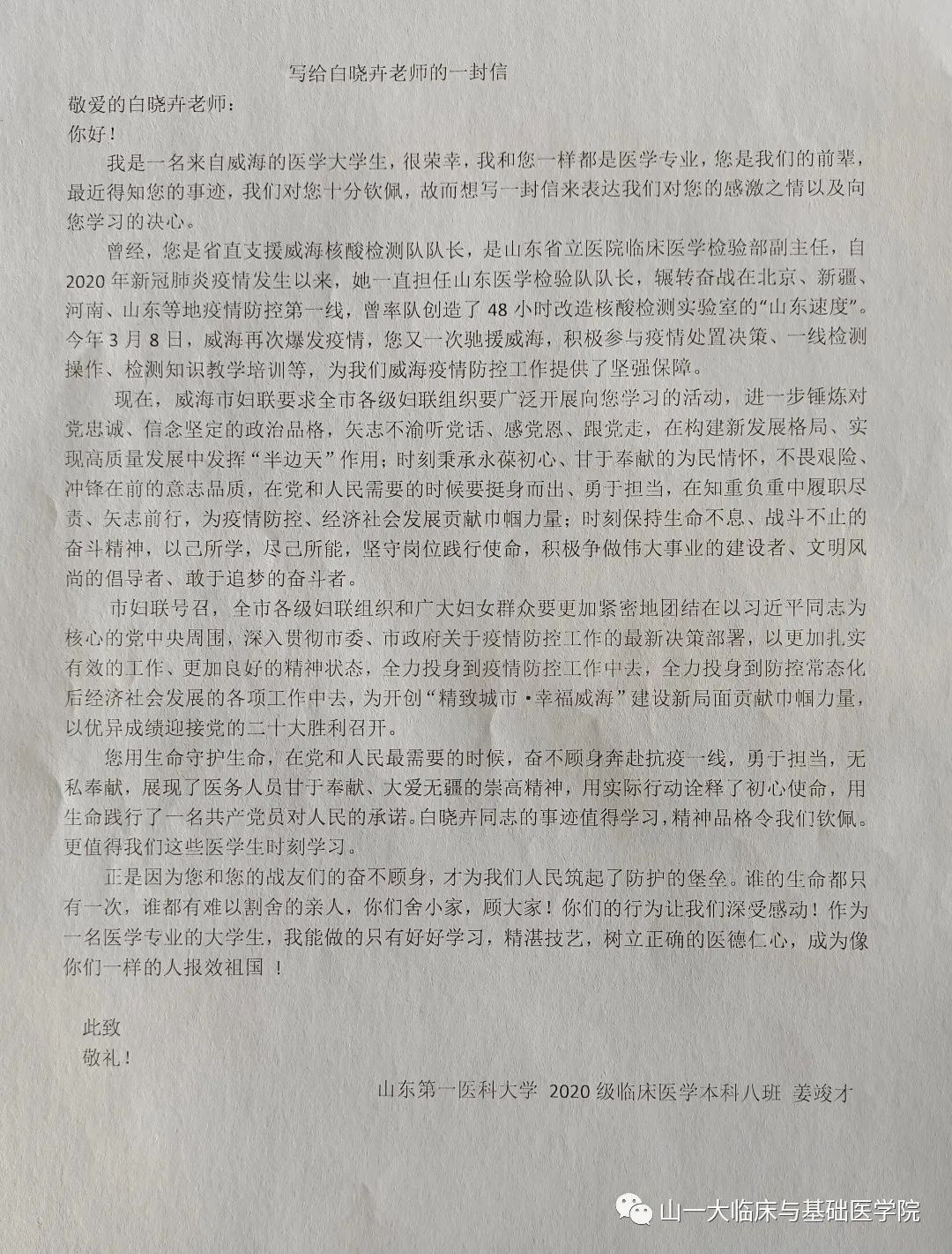 2022年3月23日,三亿体育的同学们在院(所)团委的号召下,纷纷给“山一大精神楷模”白晓卉同志写信,以表达对英雄的敬佩之情。