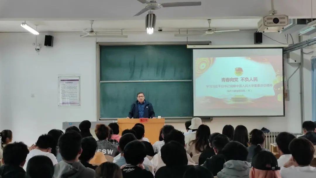 三亿体育召开优秀团员代表座谈会,学习、热议习近平总书记考察中国人民大学时的重要讲话。院(所)党委副书记张乃强,员工工作办公室主任侯瑞刚,辅导员杨成飞参加活动。院(所)泰安校区优秀团干部和团员参加会议,济南校区优秀团员代表同步线上参加活动。杨成飞主持会议。