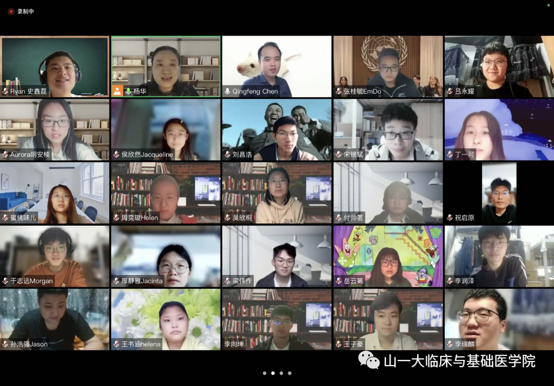 通过本次线上课程,卓越班的同学发现自己在英语专业课程方面的点滴进步,从理解困难逐步到今天的无障碍交流,是同学们不懈努力的结果,也是老师们辛勤付出的成果,更得益于山一大组织的多次英语学术讲座平台。与此同时,同学们也意识到自身科研思维和训练不足,并立志通过未来刻苦训练,按照老师们的引导,以兴趣为基础,通过科研实践和阅读文献来提升个人科研素养。作为山一大卓越班的学子,同学们必将以拼搏为桨,用信念做帆,“中流击水,浪遏飞舟”,勇担时代重任,矢志不渝地为山东和国家的医药卫生事业奉献终身!
