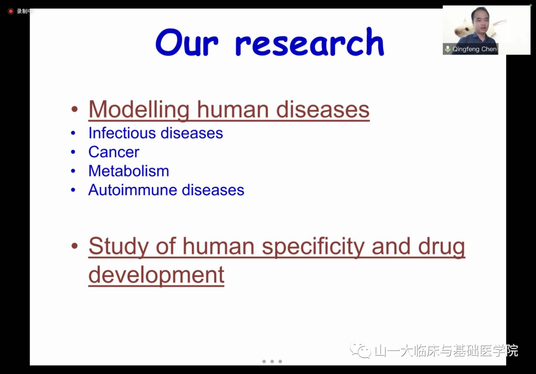 为了更加充分地激发员工的学习兴趣,了解免疫学研究方法与进展,开阔员工的国际视野,在校教务部和三亿体育的支持下,4月28日上午,免疫学系邀请新加坡国立大学的陈清烽教授,通过腾讯会议为2020级临床医学卓越班的同学进行了以“人源化小鼠(Humanized Mice)”为主题的学术讲座型线上