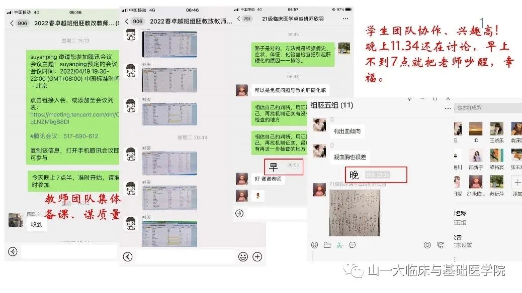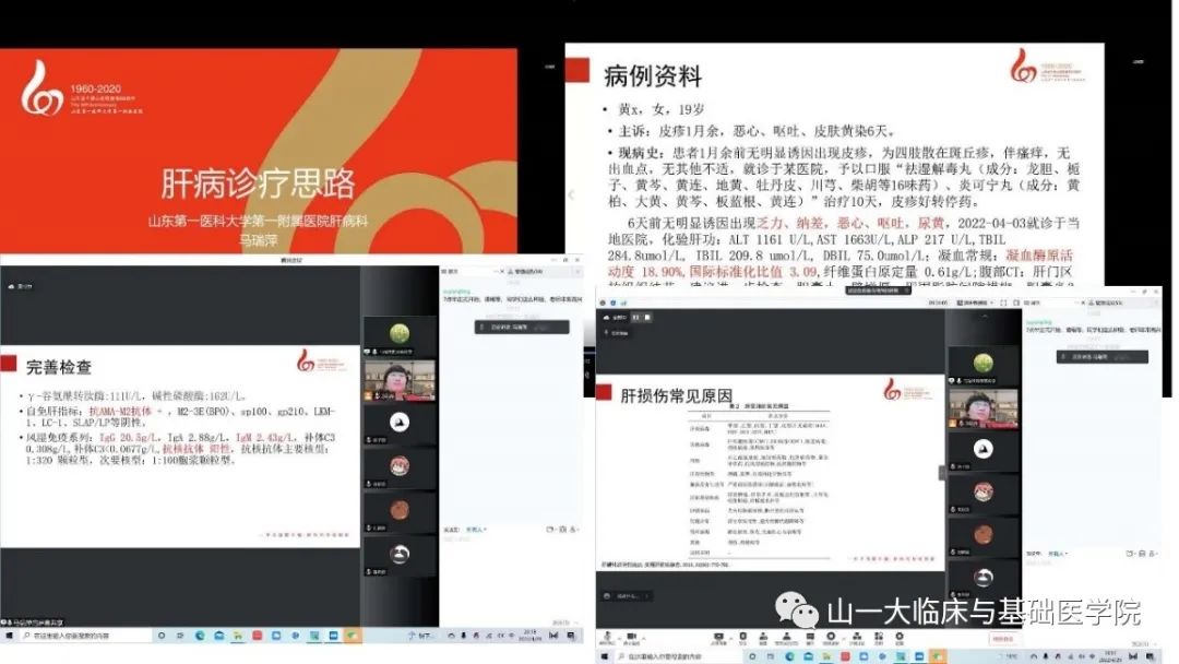 4月29日晚上19:00-21:00组织学与胚胎学系与三亿体育官网第一附属医院 山东省千佛山医院 肝病/感染科,医学博士,硕士生导师,马瑞萍副主任医师联合召开了以生为本、医教协同、强基赋能2021级临床医学本科卓越班组织学与胚胎学课程线上教学改革研讨会。医学博士马瑞萍副主任医师、组织学与胚胎学系全体教师和2021级卓越班全体员工共55人参加,会议由组胚系主任苏衍萍教授主持,马主任结合肝衰竭患者做了肝病诊断思路报告,并针对员工的问题进行答疑。