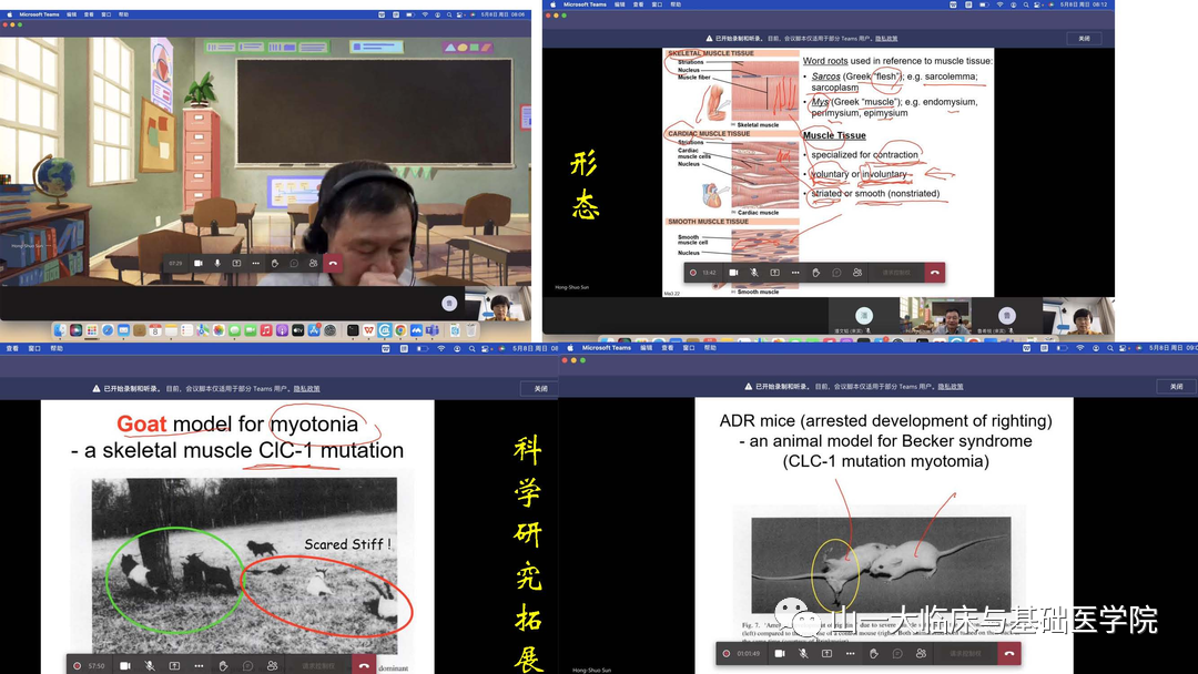 孙教授精心组织授课内容,克服时差、利用晚上的时间,从组织学基本形态、到科学研究、再到临床问题,为大家展示了一个将组织学与胚胎学领域基础、临床、应用融汇一体、知识、能力、素养贯彻始终的大讲堂。