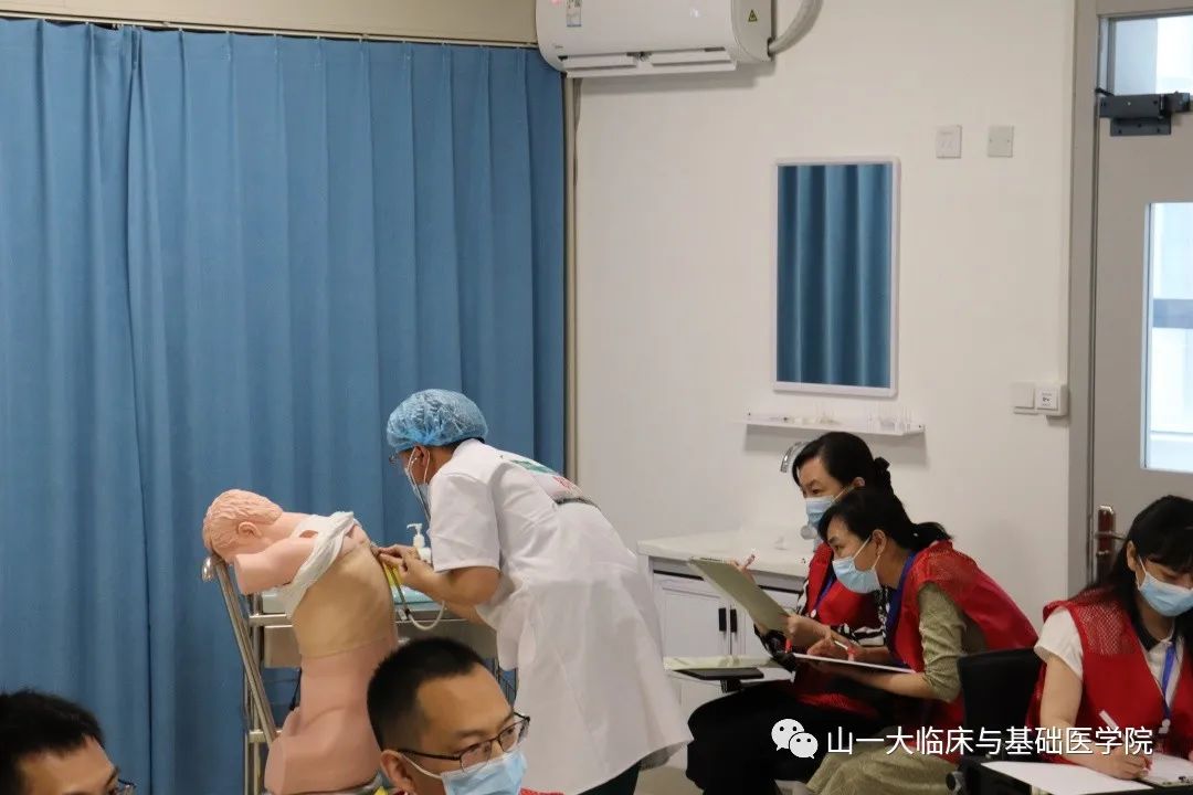 比赛在紧张而激烈的气氛下有序进行。选手们热情高涨、配合默契,发挥出色,向在场裁判老师展现出扎实的技能操作水平、默契的团队合作精神和优秀的医学素养。选手们不服输,不畏难,在与队友的合作中找到自己的薄弱方面,在与对手的竞争中发现自己的不足之处。这是一个学知识、练技能的平台,更是一个体现医学科学精神的舞台。