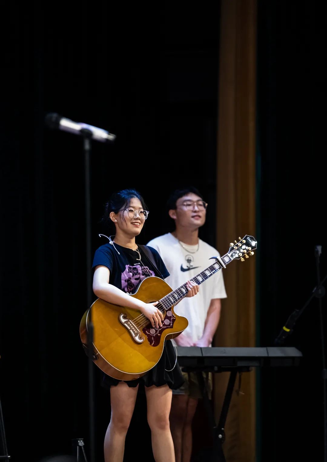 精彩的晚会在欢声笑语中达到高潮,中场的游戏互动同学们积极参与,展示自我,一个个活跃的身影彰显着青春的活力和生命的激情。听着美妙的器乐合奏《想去海边》,赏着优美动人的《夜空中最亮的星》,品着真情流露的小品《披星戴月的想你》,叹着富含深刻内涵的朗诵《永不消逝的声音》,在场的同学们欢呼着,雀跃着。他们或激动,或感动,享受着青春激情,感受着奋斗乐趣,怀揣着梦想,憧憬着未来。