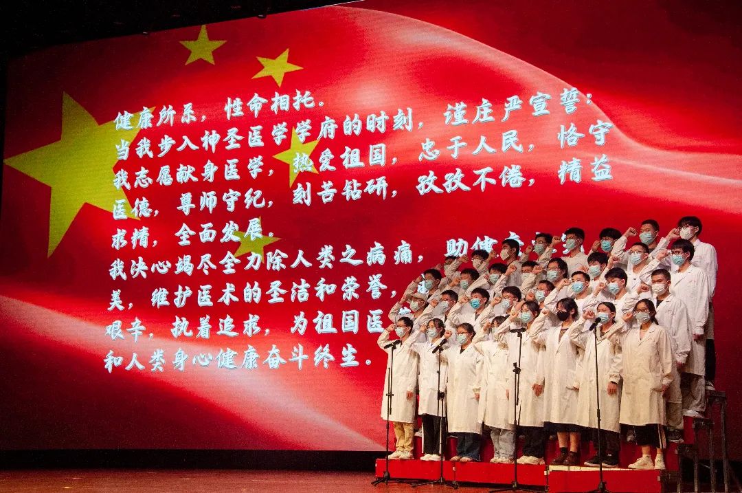 从今天起,2019级学子将从一名医公司员工成长为一名见习医生,同学们庄严宣誓,为职业生涯揭开新篇。大会最后以院(所)老员工艺术团声乐队带来的歌曲《在路上》结束。悠扬动听的音符化作逐梦的我们,脚下有路,哪怕磨难万千,仍未想过却步。