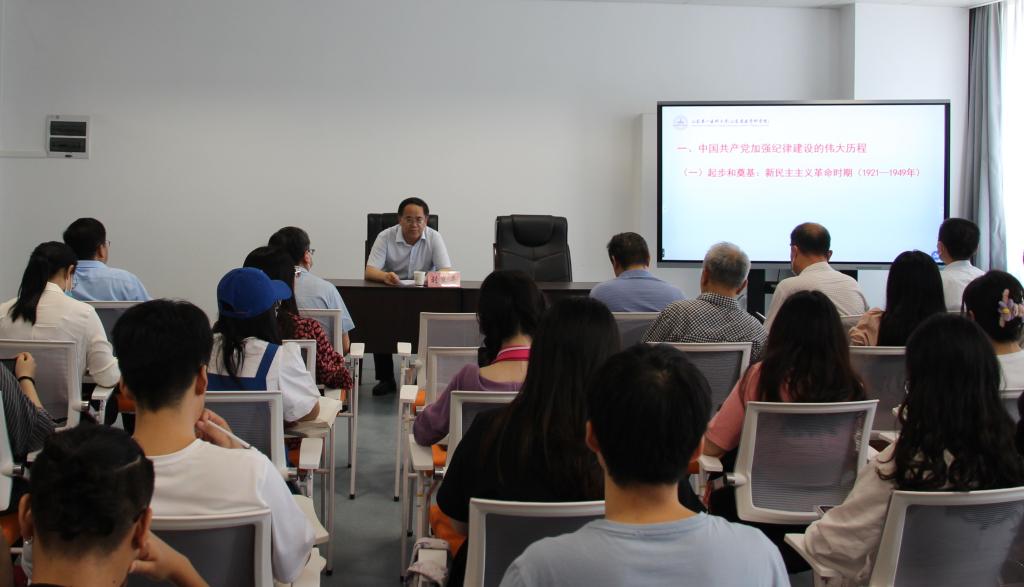 刘东平结合自己学习体会和职责要求,围绕中国共产党加强纪律建设的伟大历程、基本经验、纪律底线红线以及对新时代广大青年要求,作了深入浅出的阐释。