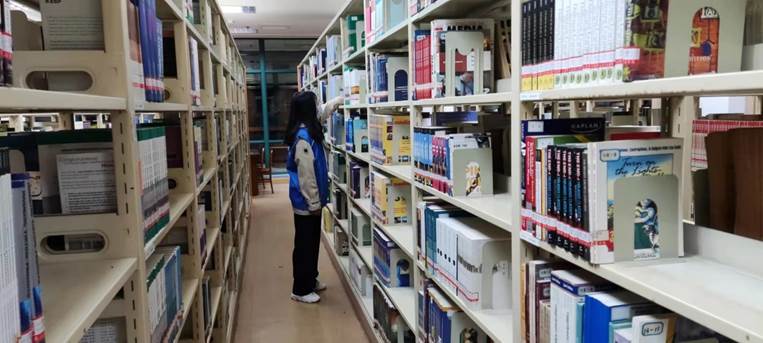 图书馆组协助工作人员在图书馆闭馆后进行第三书库的书架卫生整理。同学们穿梭于一排排的书架之中,拭去书架上的灰尘,调整错位书册的顺序,为同学们营造了一个整洁有序的阅读环境,于知识的海洋中践行着奉献精神。