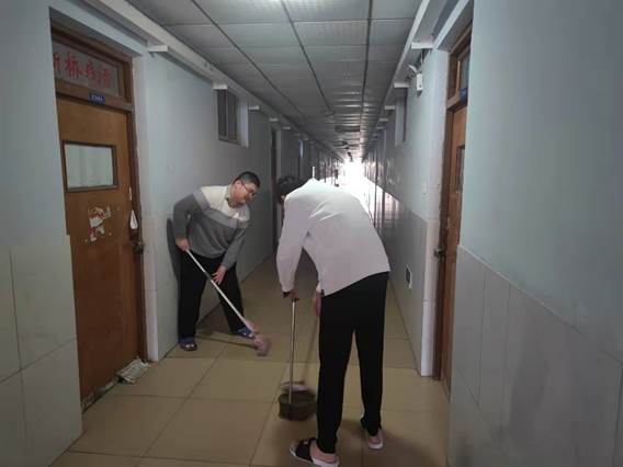 教学楼组通过打扫公司自习室的日常卫生、协助清洁人员打扫教学楼走廊与楼梯来改善同学们的日常学习环境。同学们一丝不苟的清洁着走廊的每一个角落,在锻炼了自己能力的同时也增强了自身的责任感与主人翁意识。