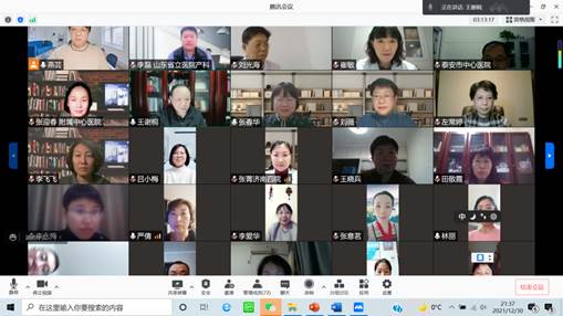 2021年12月31日,妇产科学系召开《妇产科学》同质化教学研讨会,会议采用线上方式,由妇产科学系主任王谢桐教授主持,附属省立医院左常婷教授、刘鸣教授、孟金来教授、第一附属医院郭伟教授、第二附属医院刘光海教授、附属中心医院张迎春教授、附属聊城医院王晓兵教授、附属烟台山医院严倩教授等各教学医院教研室主任、教学秘书及新学期妇产科学任课教师共80余人参加会议。